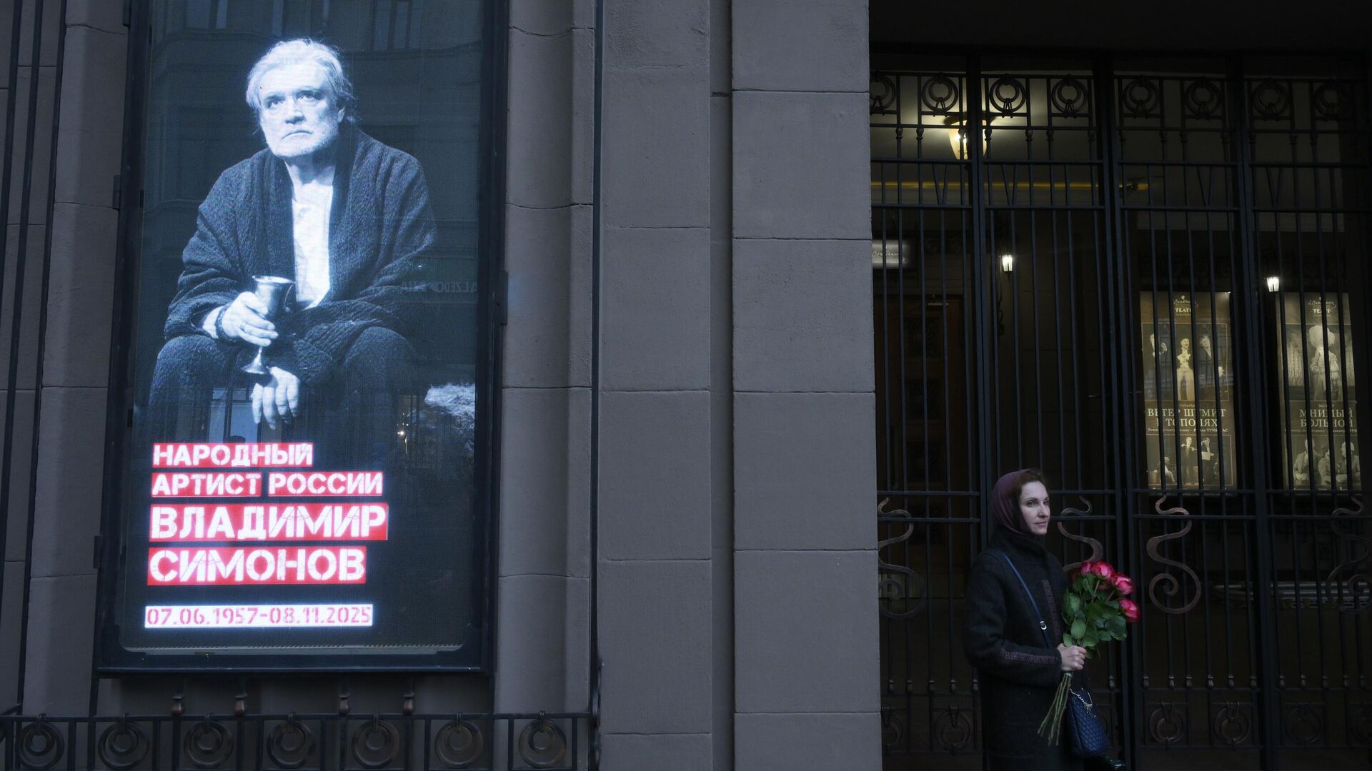 Люди приходят к театру Вахтангова, чтобы проститься с Владимиром Симоновым