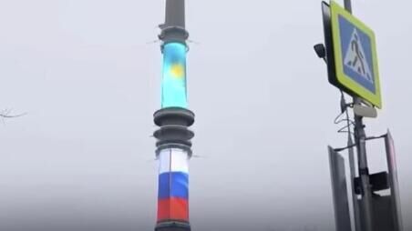 Останкинская телебашня окрасилась в цвета флага Казахстана
