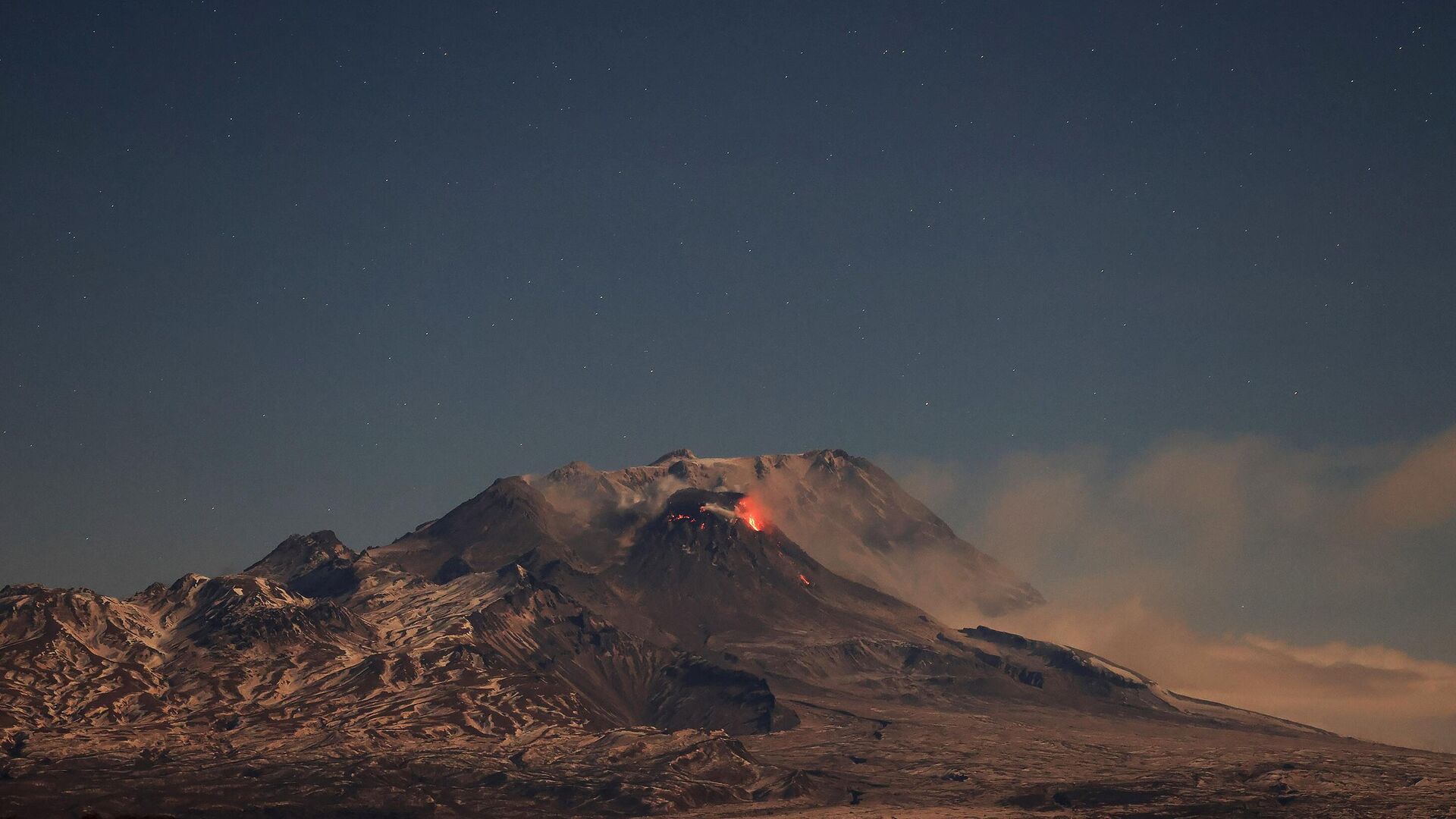 Над вулканом Шивелуч на Камчатке поднялся шлейф ресуспендированного пепла