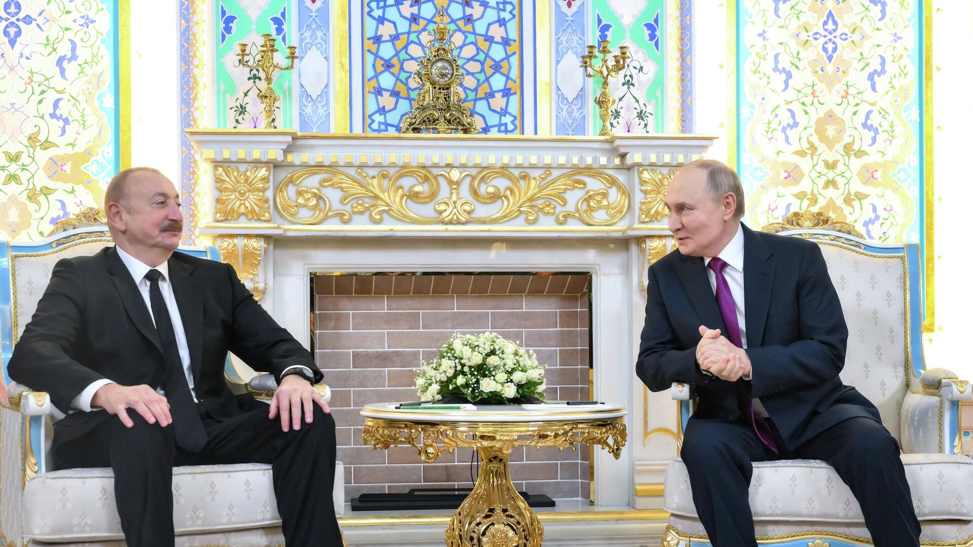 Появились кадры общения Путина и Алиева после переговоров в Душанбе