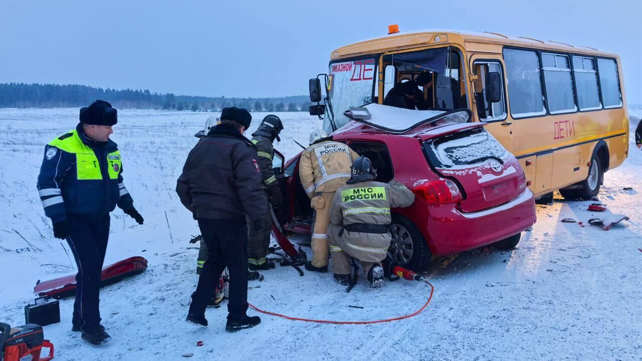В Красноярском крае школьный автобус столкнулся с легковушкой