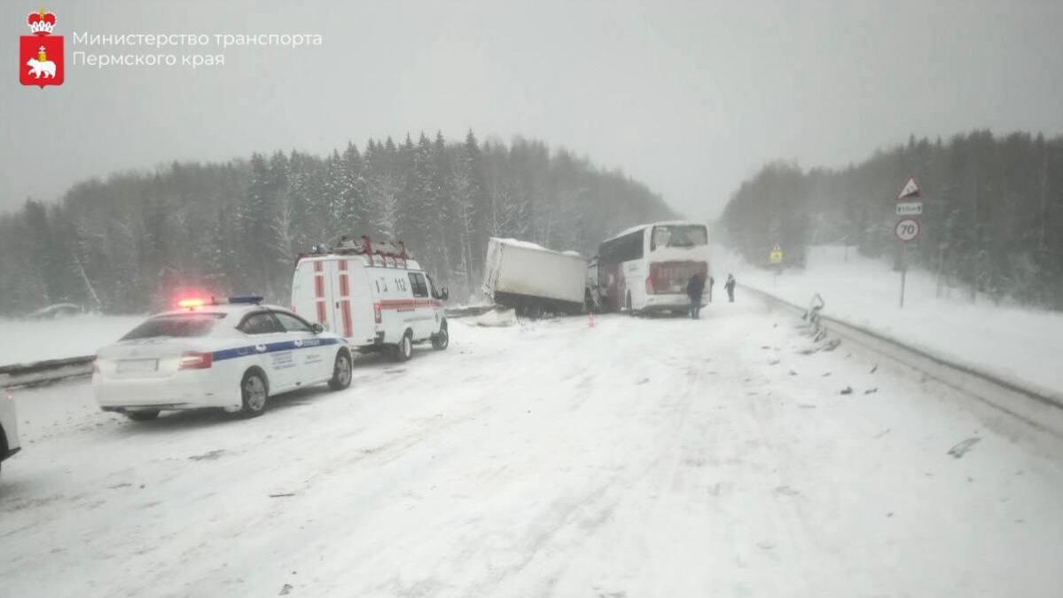 В Пермском крае на трассе столкнулись автобус и "Газель"
