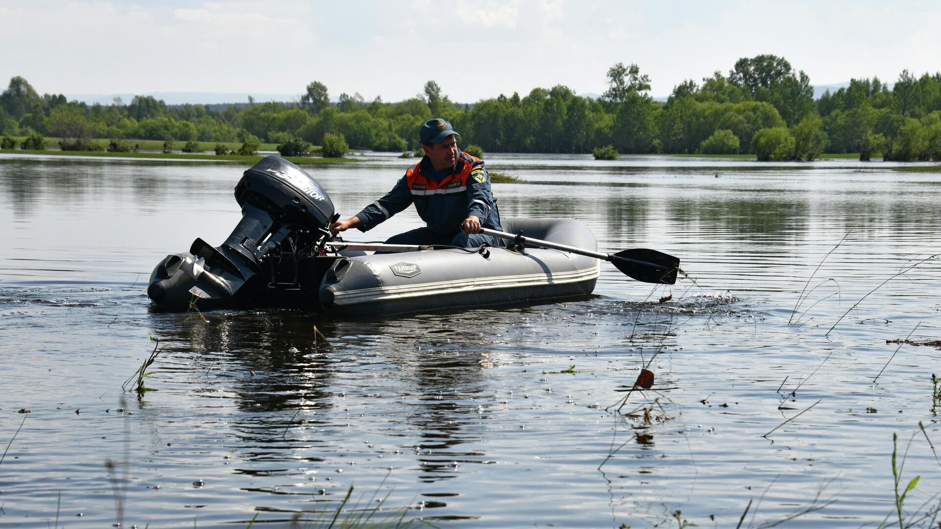 Жители подтопленного дагестанского села передвигаются по улицам на лодке