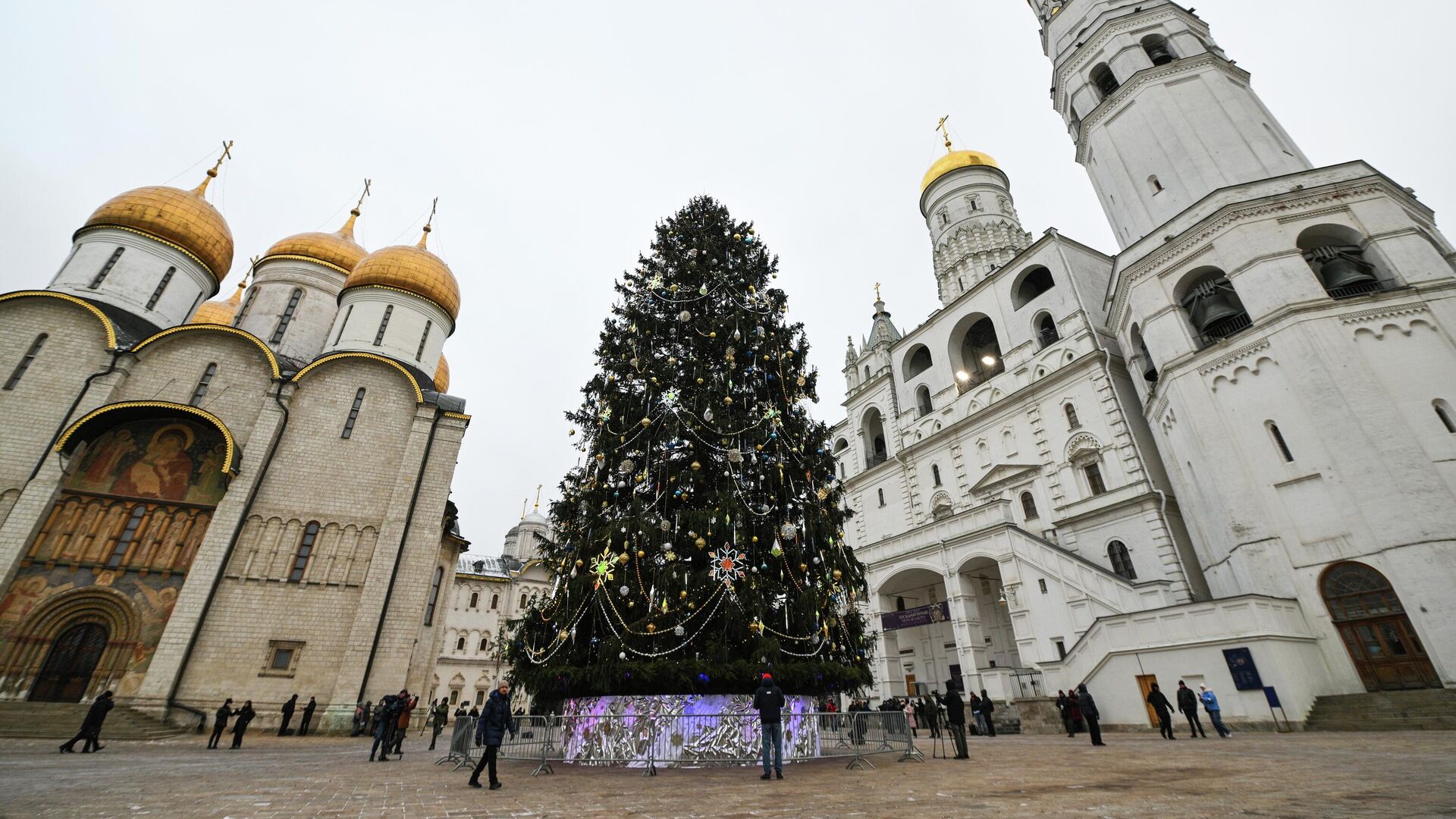 Главную новогоднюю елку России украсили игрушками и гирляндами