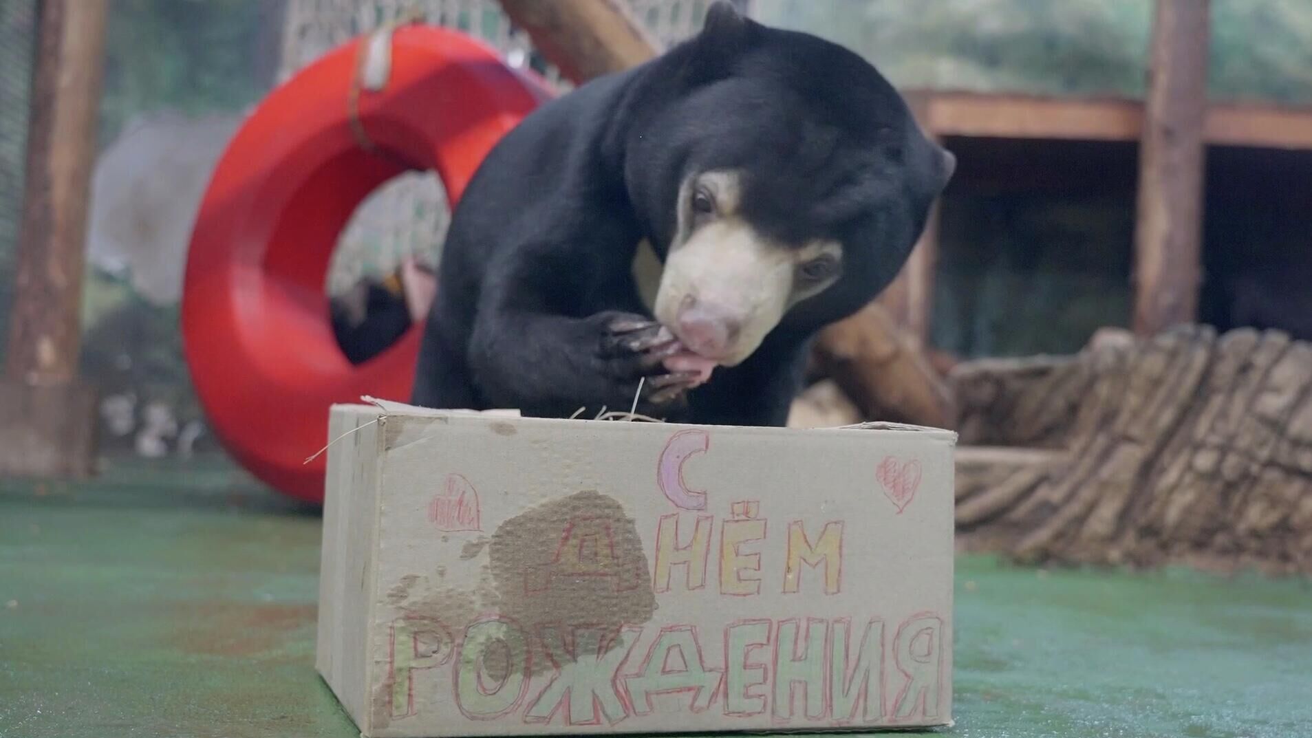 В Московском зоопарке медведице Маше подарили торт на день рождения