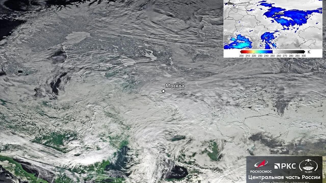 "Роскосмос" показал снимок циклона, принесшего снегопад в Москву
